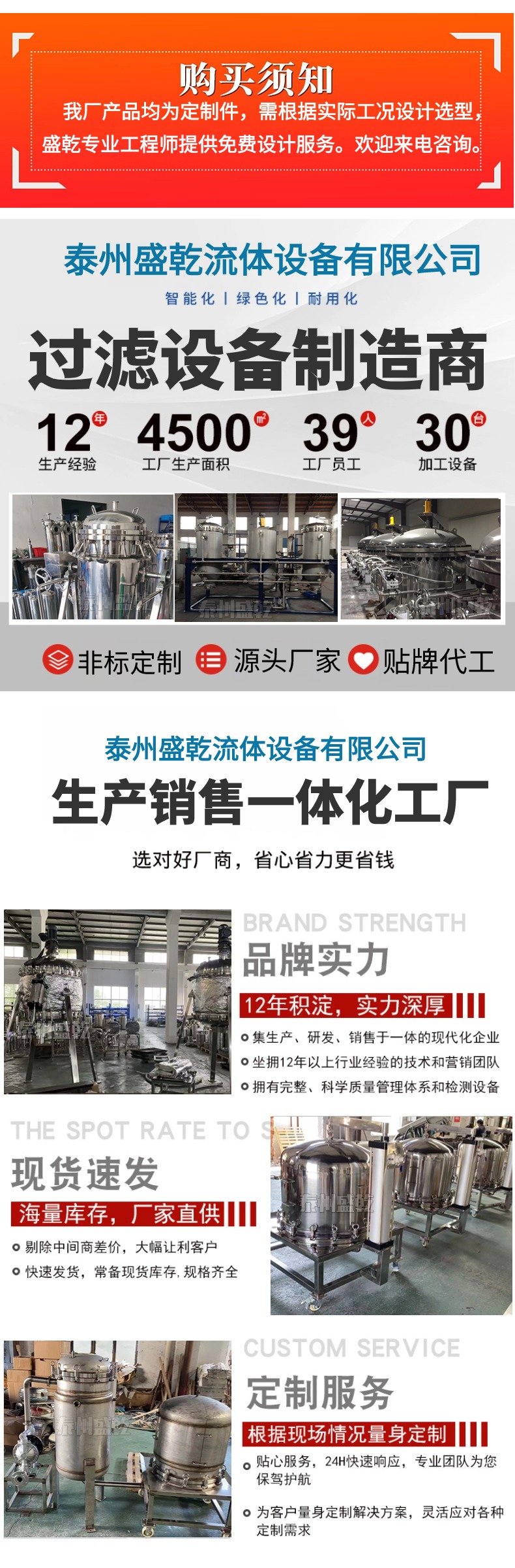 ABOUT US泰州盛乾流体设备有限公司致力于生产过滤器材、换热设备以及非标罐体金属件的加工。我厂拥有完整的质量管理体系和检测设备,集生产研发销售于一体,欢迎广大客户合作洽谈。